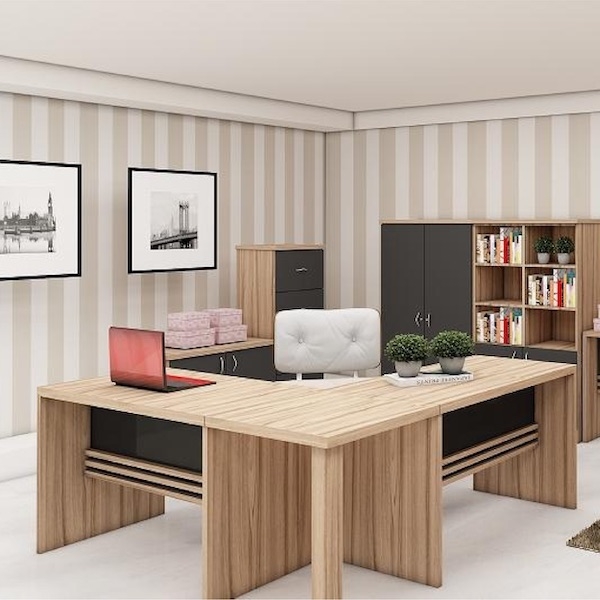 Tampos em 40mm encabeçado, com aplicação de fita de 1mm, restante do móvel em 15mm. Para parte de trás de armários e balcões, opção de fundo em 15mm ou 3mm. Pé painel rente ao tampo e reto, em 25mm. Detalhes de Réguas 25mm na saia.